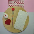 Kit de papelaria romântico perfeito para cartas, diários e listas com muito estilo. Contém lápis multicolorido com topper em forma de coração, borracha em formato de coração, adesivos de pequenos corações e um envelope decorado com estampa de corações. Qualidade suave, cores vivas e acabamento cuidadoso. Ideal para presentear quem ama escrever ou para uso criativo no dia a dia.